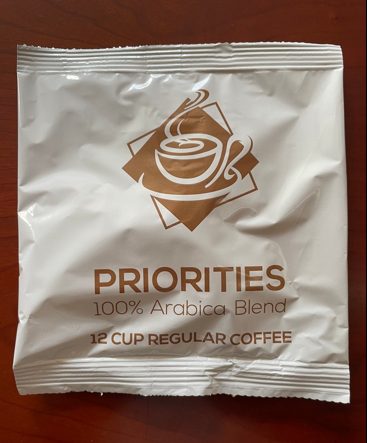 Priorities Coffee | 12-cup dark roast regular, 100/case